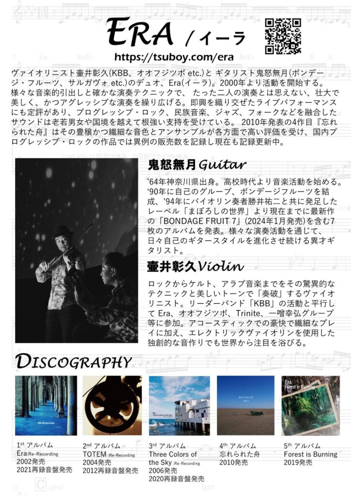 2025/12/17 (水) | Era | 19:30 | 大阪 CHOVE CHUVA (06-6225-3003) [map] |